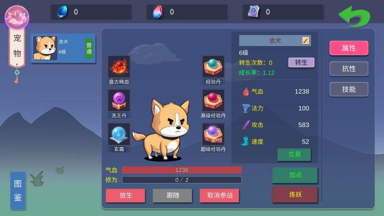 11、在宠物界面,我们可以管理和查看自己的宠物,
