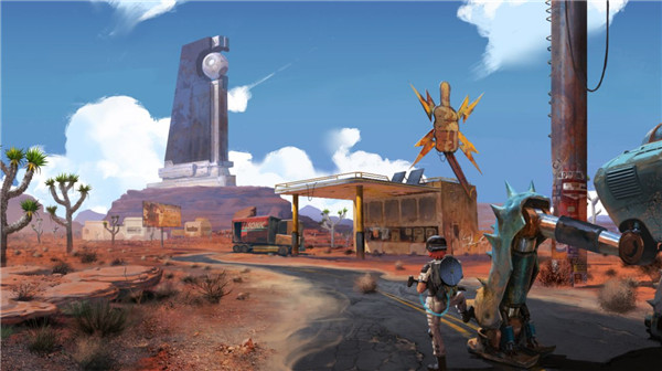 游戏中人物、武器、载具的设定十分“抓人眼球”,每一元素都拥有鲜明的废土风格:一望无际的黄沙与高科技感的建筑,饱和鲜明的色彩搭配与浓重的美式漫画风。