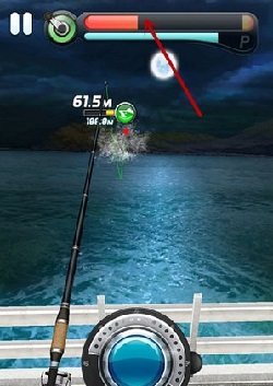 4、避免用力过度在和鱼相持的过程中,要避免力度槽变满太久。只要力度槽满了超过1秒钟,鱼线就会断掉,所以要避免鱼线断掉,就要让力度槽保持在安全的位置。