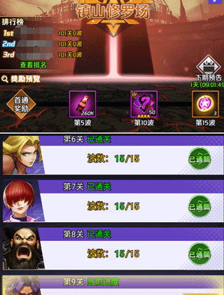 ②、要是你拥有101级以上的八神庵(101级后会激活击杀无限连),就把最优质的装备都配备给他,让他来带领团队取胜即可。即便他带着5个1级角色,只要你的八神庵足够厉害,便能够直接将对面全队连续攻击至死。如此一来,对面根本没机会接触到你那五只1级角色,自然而然就能轻松达成三星通关,这算得上是极为轻松惬意的通关途径了!
