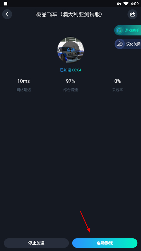 1、打开极品飞车手游最新版,游戏需加速器启动,点击右侧加速;