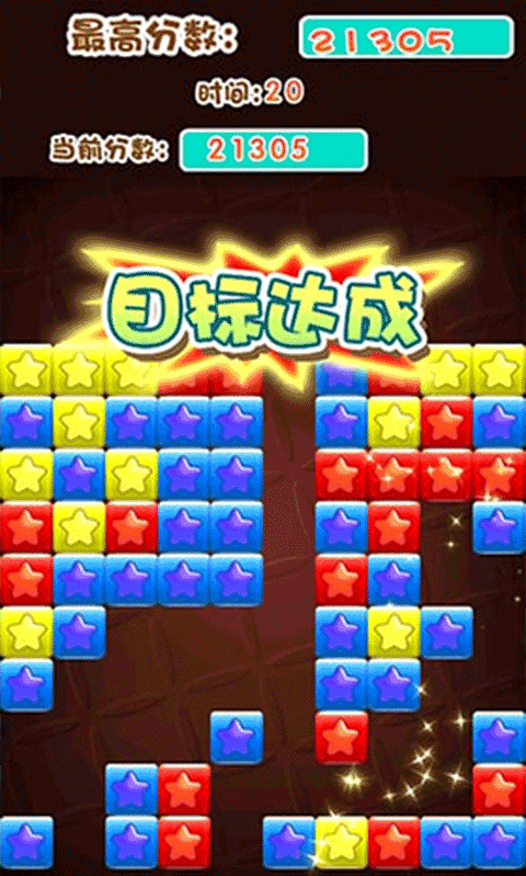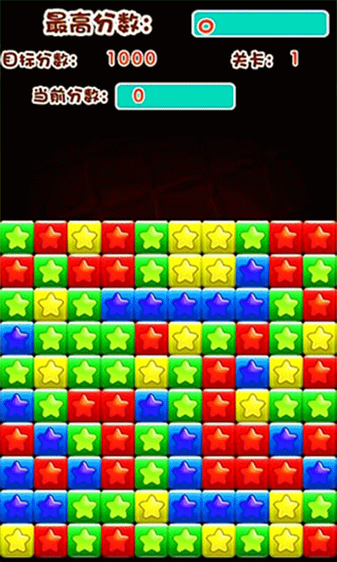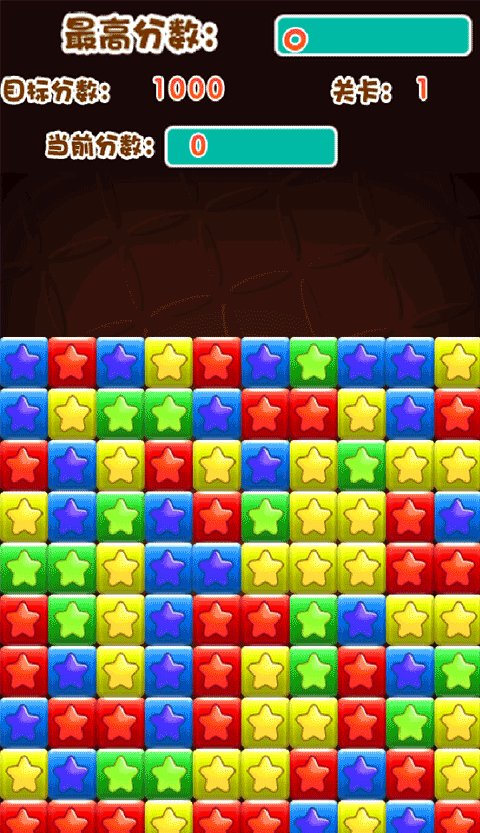 2、通过消除方块获取指定分数,从而实现关卡升级。