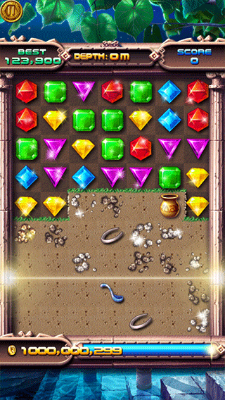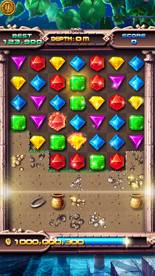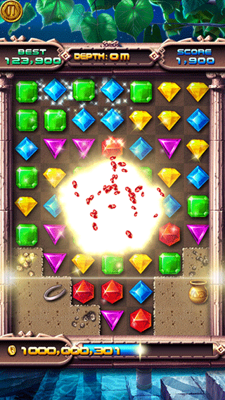 3、玩法与三消类似,通过三个相同的宝石来进行消除;