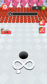 6、点击右侧选项能够实现等级提升,提升之后,黑洞会变大,不仅能一次性收集海量物资材料,还能制造出更多钞票。当游戏界面上方的能量条满格,你就能进入下一关。后续更多精彩有趣的玩法,就等你自行探索啦。
