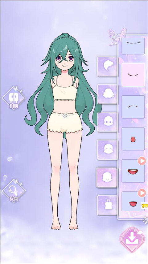 3、接下来依次挑选眼睛、眉毛、嘴唇等部位,随后便能够着手为她进行换装。