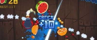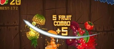 6、不一定出现水果就去切,可以让水果飞一会,与其他水果相汇或者成直线时进行一次性切割,combo的几率更大