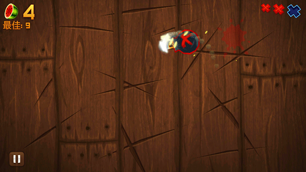 游戏过程中,水果与炸弹会持续出现,时间没有限制。水果若未被切到,玩家共有三次失误机会,而一旦切到炸弹,游戏即刻结束。每当玩家积累到100分,就会自动恢复一次之前失去的失误机会。