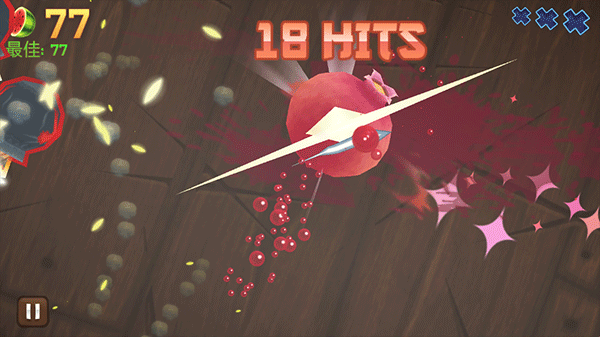 特效:在街机和禅境模式中会使水果额外反弹一次(说白了,就是没有切到的水果再重新抛一次。)