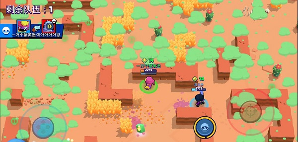荒野决斗是单人或双人战斗模式,每局10名玩家,最终赢家只有一位/一组。通过摧毁木箱或击杀敌人获取能量块,提升攻击力和生命值,毒雾会不断从外向内包围,英雄身处不断缩小的安全区域中,淘汰其他玩家,生存排名越高则奖励越丰富。