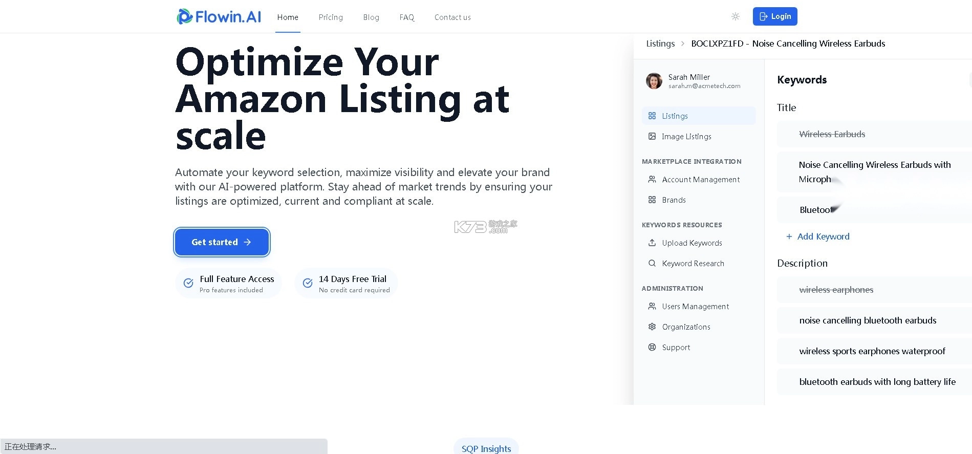 Flowin登录入口:https://flowin.ai/ ,点击【Get started】,输入账号密码便可登录。