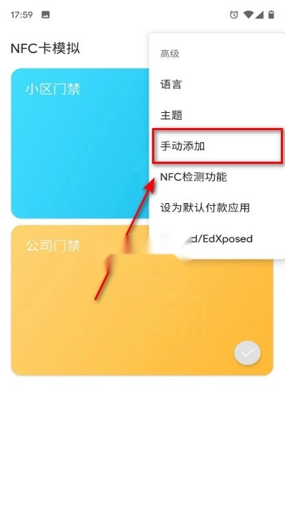 1、在本站“”nfc卡模拟“”打开 ,在首页点击手动添加