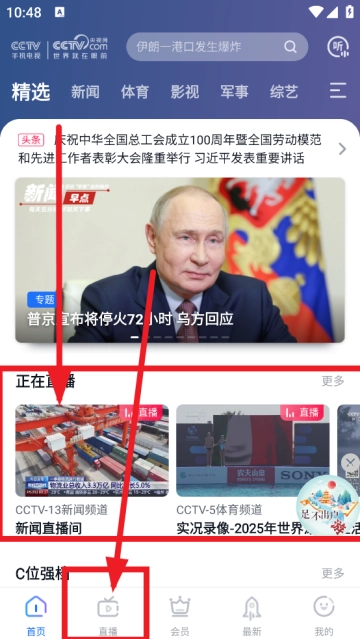 2,打开软件,这里两个地方都可以点,建议点下面的直播,内容更多