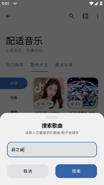 配适音乐,一款超好用的音乐播放软件。它有着海量音乐库,任你挑选,能全方位满足你的听歌需求。不仅如此,软件还提供搜索、分类、歌单等多样功能,用户可按需选择,更便捷地找到心仪歌曲。感兴趣的朋友,快来试试吧!
