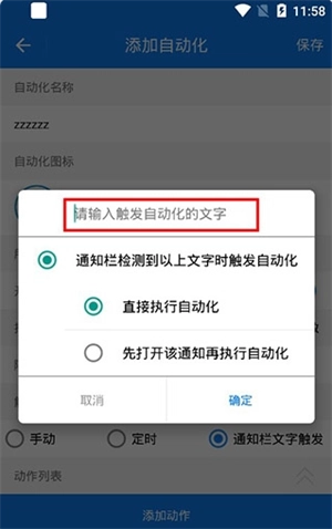 3、首先输入自动化名称,随便输入即可。