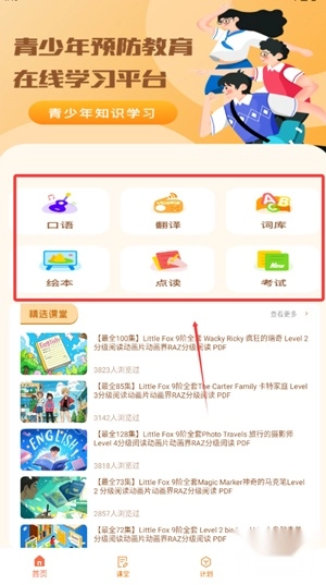 1、用户可根据个人学习需求,在首页直观选择相应功能模块。