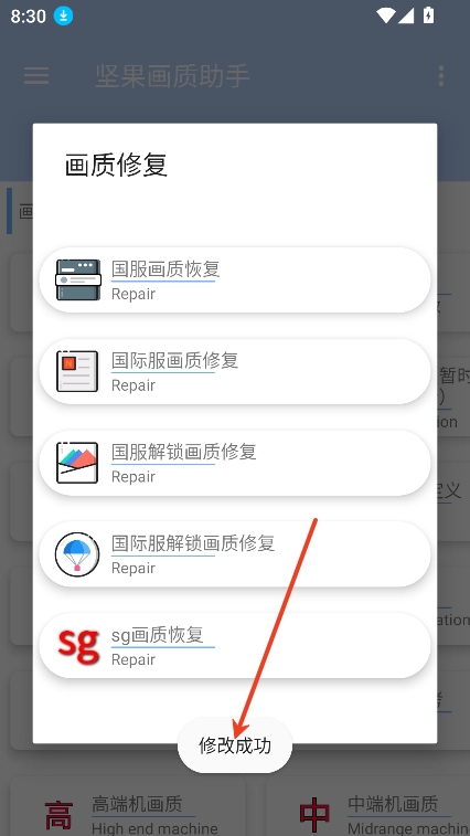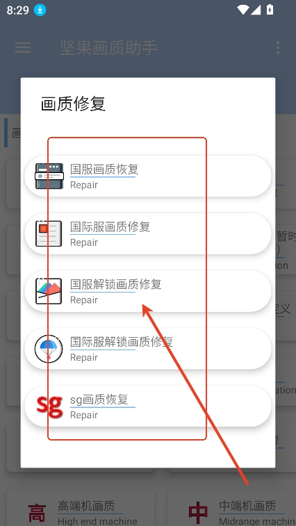 3、例如进入“画质优化”可以根据国服,国际服不同版本游戏进行针对性画质修复,调整