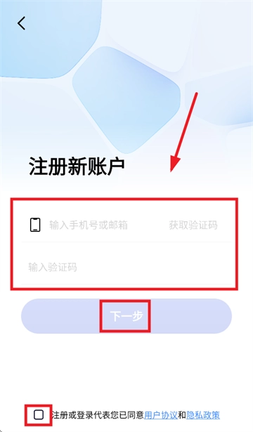 请输入手机号及验证码,注册或登录操作即表明您已同意用户协议与隐私政策,点击“下一步”便可继续。