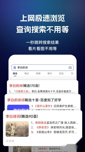 1. 凭借独家研发的核心技术,达成极速网页加载效果,为用户呈上极速流畅的浏览体验。