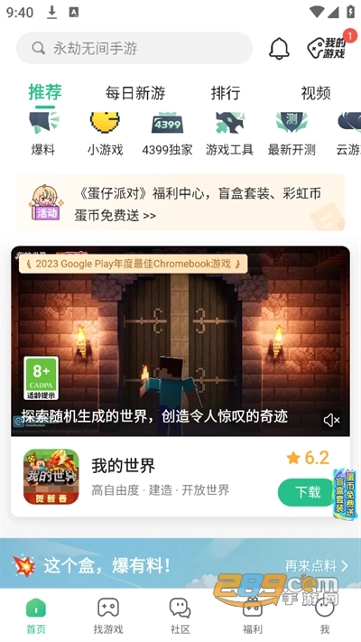 4399游戏盒和大家熟知的4399小游戏有所区别,它聚焦的主要是热门游戏与单机游戏,像迷你世界这类游戏,在该平台上能找到大量相关攻略及内容。要是你想安装4399游戏盒,就前往289网。