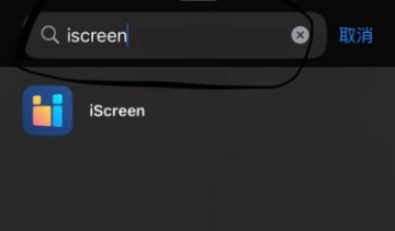4、输入iScreen,然后点击搜索的内容,添加小组件