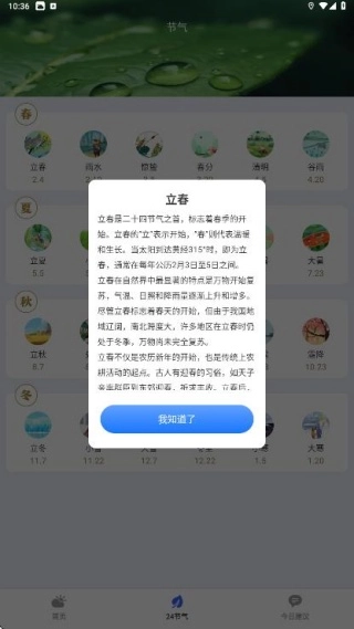 4、在节气板块,则会为我们呈现24节日对应的日期和信息介绍。