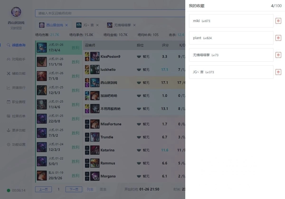 5、自动发送战绩,发送队友最近游戏战绩。