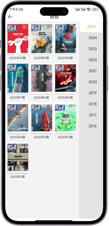 以《第一财经》为例,直接搜索"第一财经",找到相关期刊,再点击"往期>>更多"按钮,可以看到期刊大全。
