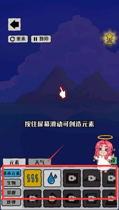 1. 游戏内包含两种模式,分别为自由创造模式与关卡模式。在自由创造模式里,只需挑选创造元素,接着按住屏幕进行滑动操作,便可实现生成。