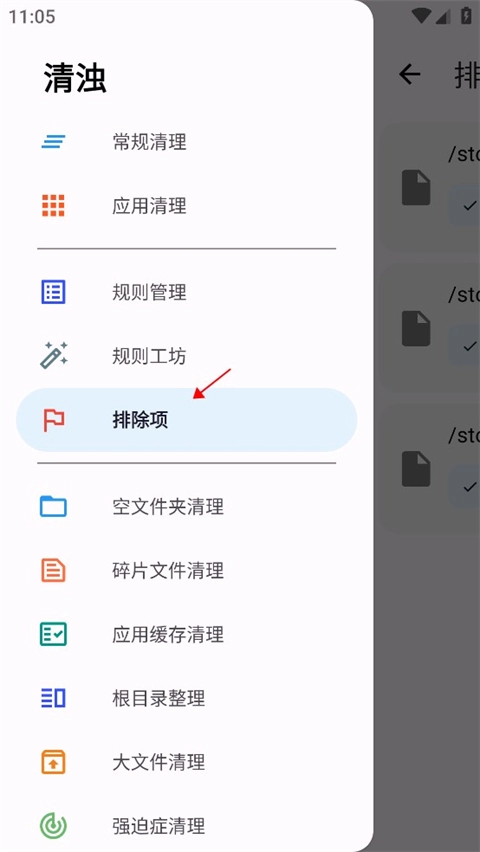 3、有时候我们并不想清理掉需要用到的文件,可以点击服务功能找到排除项。
