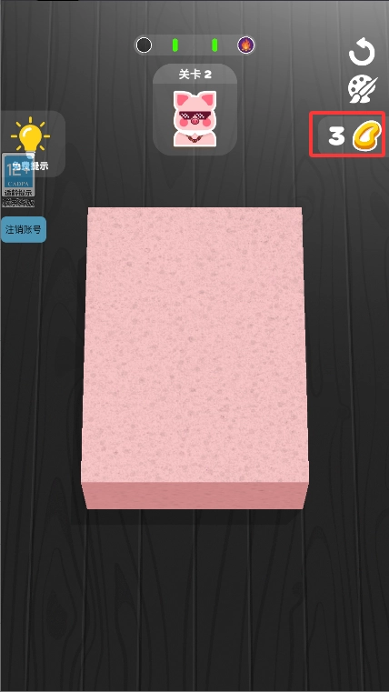 2、进入第二关后,右边可以查看你的橡皮筋数。