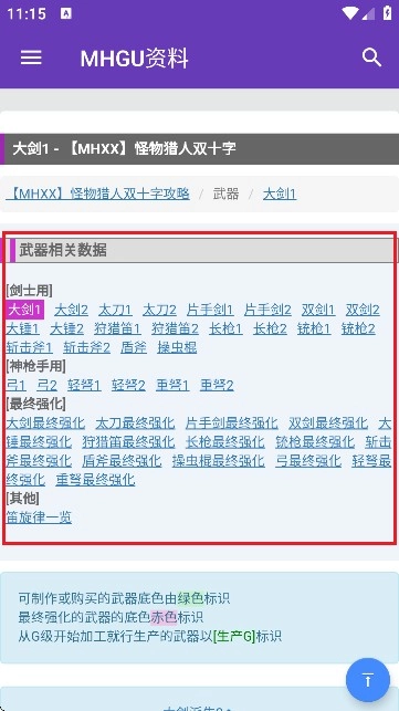 1.具备全面且详尽的MHGU数据库,其内容囊括了全部怪物的弱点、掉落物品以及出现场景,助力玩家能够轻松掌握战斗技巧。