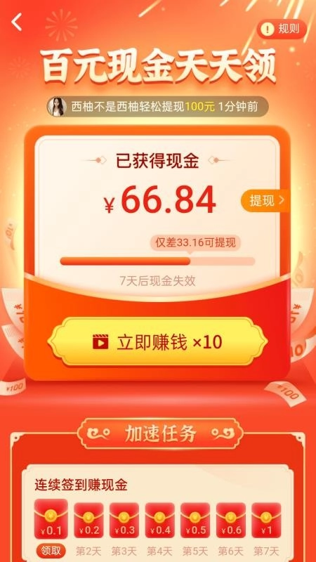 3、可参与每日签到领取红包奖励,连续签到可以领取到更多现金奖励;