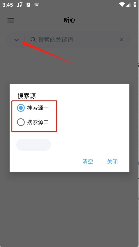 2、进入到首页,点击箭头选择播放源。