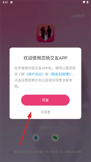 3、勾选用户协议和隐私政策,点击登录
