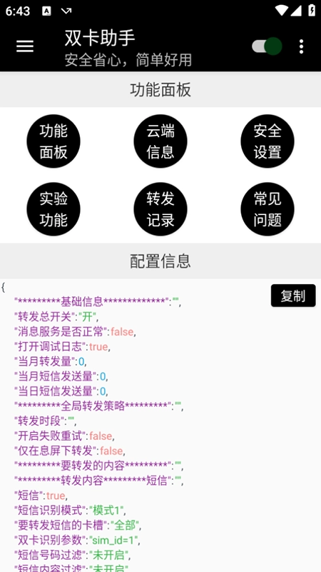 双卡助手作为一款信息处理工具类软件,其核心功能在于助力用户对备用手机的各类信息进行远程管理。该软件具备高度自定义设置,能够支持短信、来电、收款、电量等信息的实时转发与查看,对于那些有跨设备同步信息需求的用户而言,这款软件颇为适用。