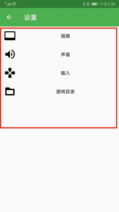 2、进入设置界面,可对视频、声音、输入和游戏目录进行设置,选择视频选项