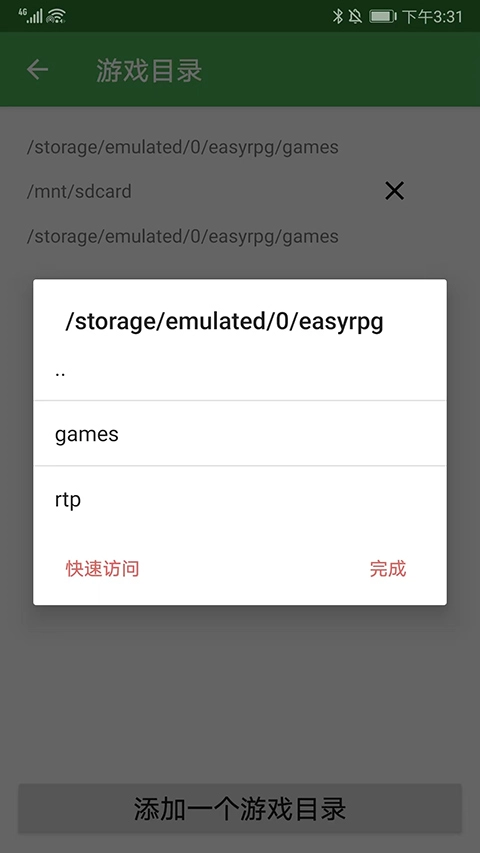 1. 打开软件后,能看到默认游戏保存在 /easyrpg/games 。此外,还能通过点击右上角的齿轮图标,在设置中添加新的游戏目录。