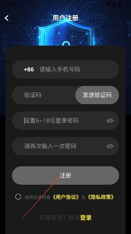 3、输入账号密码,点击登录,没有账号,点击下方注册