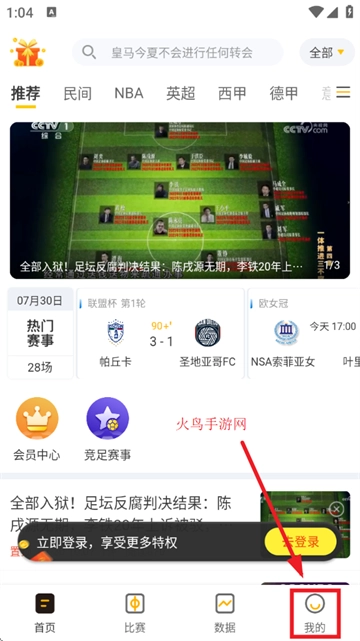 1、首先打开球天下体育,接着点击右下角“我的”;