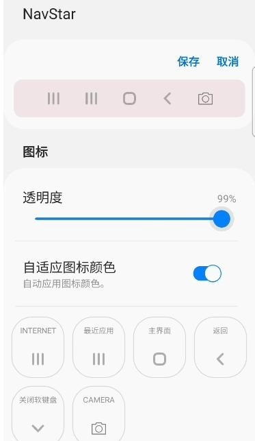 4、调整图标的透明度,还可以自主选择导航条上的图标样式,太多太多的图标
