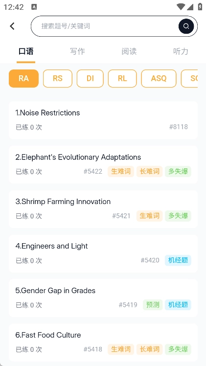 2、在学习页面中提供了口语、写作、阅读以及听力等版块,让用户轻松的学习。