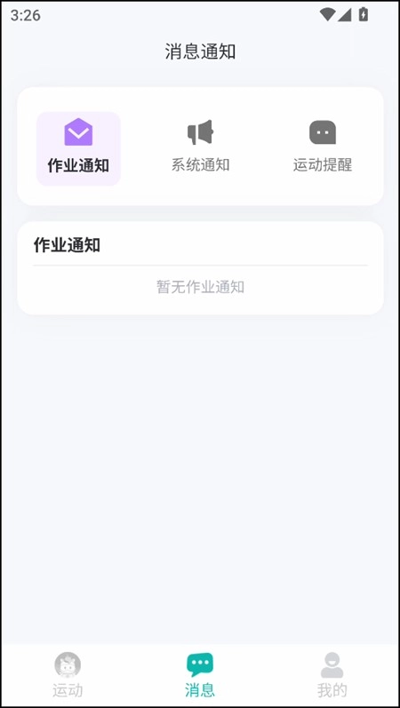 3、在消息界面下,我们能够查看各种作业通知、系统通知以及运动提醒。