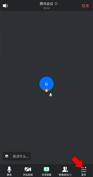 3、进入会议成功并邀请成员开始会议后点击右下角的更多选项。