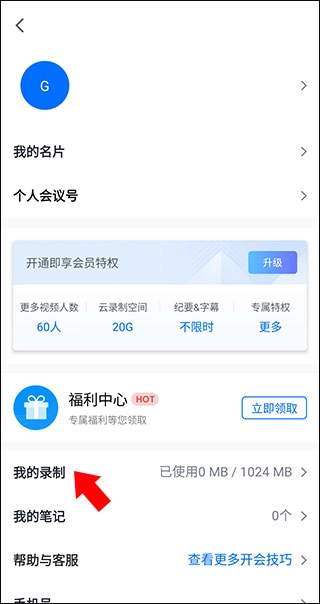 7、进入个人界面后点击我的录制选项。