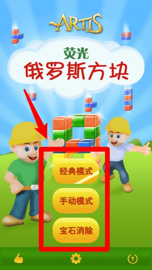 1.选择游戏模式:主界面提供经典模式、手动模式与宝石消除玩法。