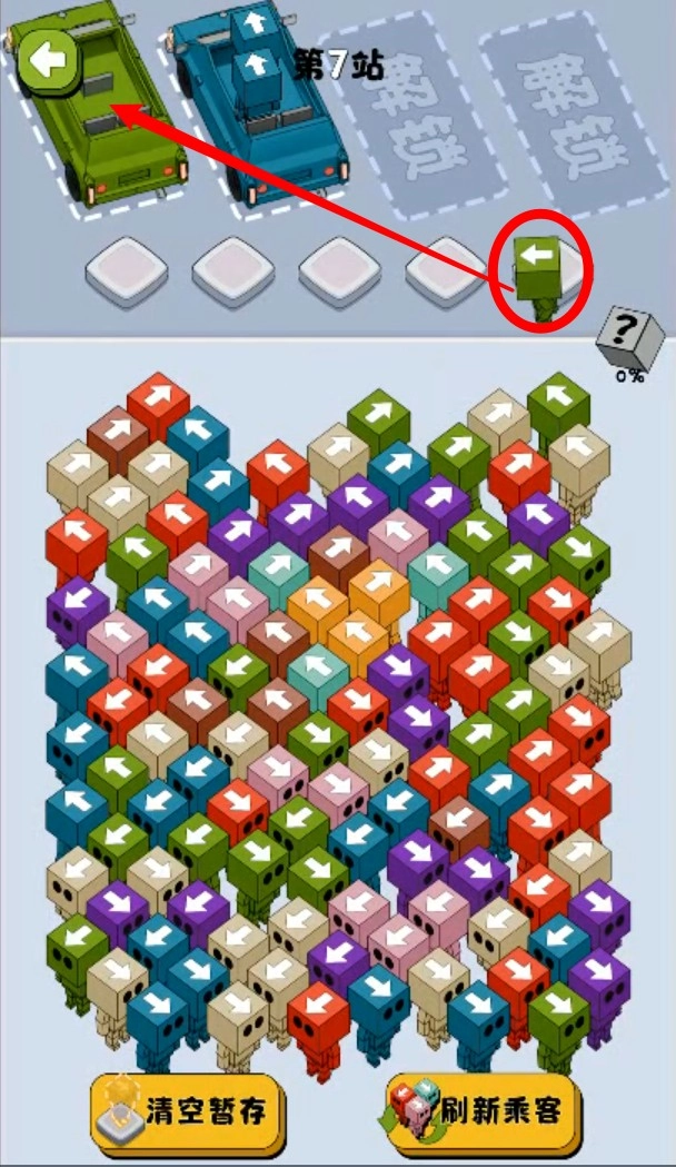 2.观察乘客与车辆的颜色,确保对应颜色的乘客进入车内。