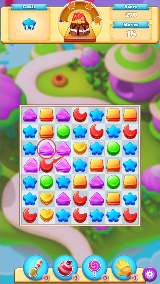 2、丰富多样的道具系统,包含炸弹、彩虹球、方向消除等十余种特殊道具,帮助玩家突破难关。