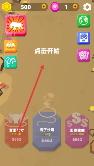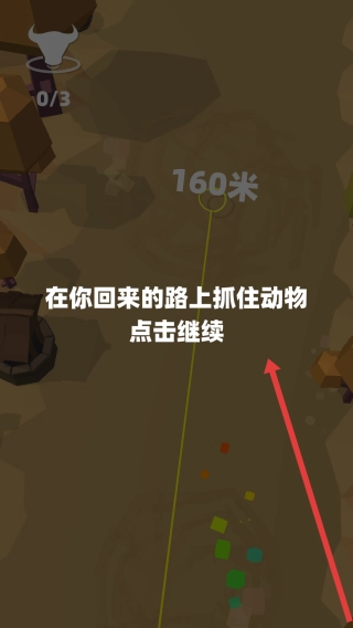 1. 点击【点击开始】按钮,即可进入游戏。游戏中会配备套索(初始长度为160米),需在160米的路径范围内使用套索抓捕动物,完成“0/3”的捕获任务。