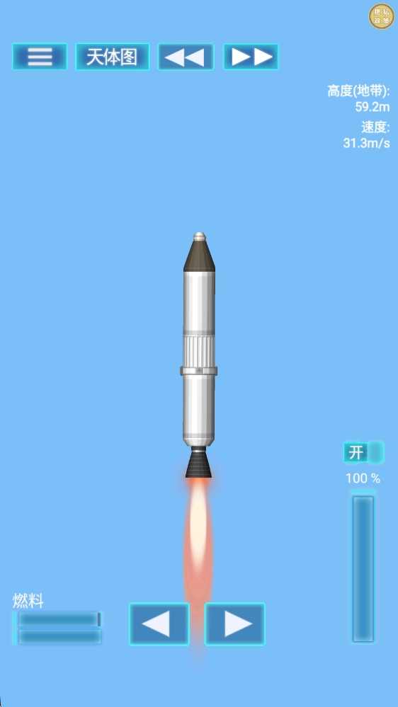 2、操作攻略 点火与加速:按住油门键控制推力,合理分配燃料,避免过早耗尽导致任务失败。 姿态调整:利用方向键或陀螺仪(如果支持)调整火箭飞行角度,确保进入预定轨道。 轨道规划:进入太空后,通过调整速度和方向进入稳定轨道,或借助行星引力实现更远航行。