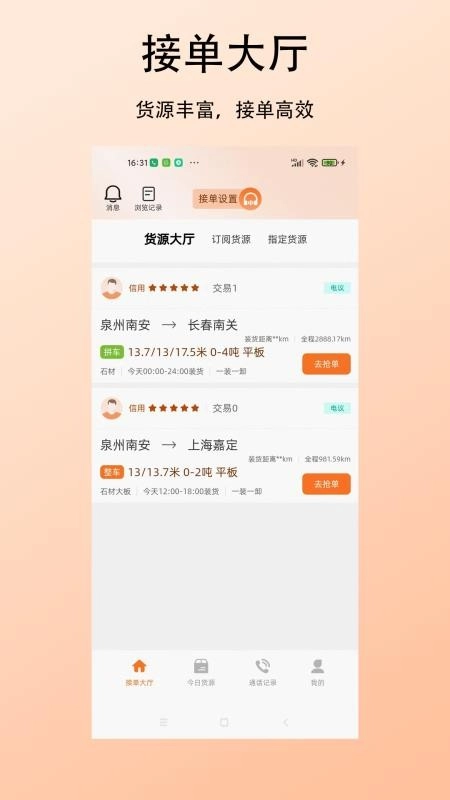 每天都有新的货源更新推送,可实时在应用中关注并选择性接单,简单方便;